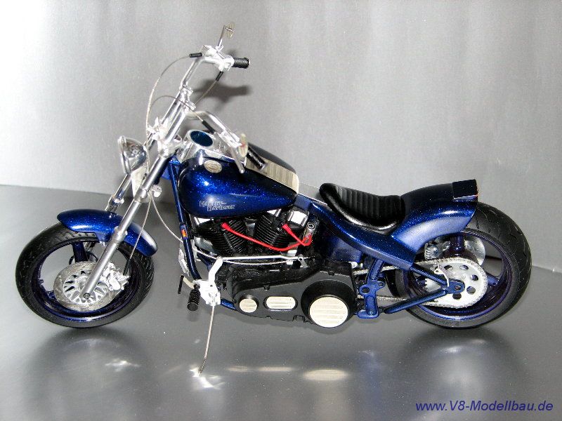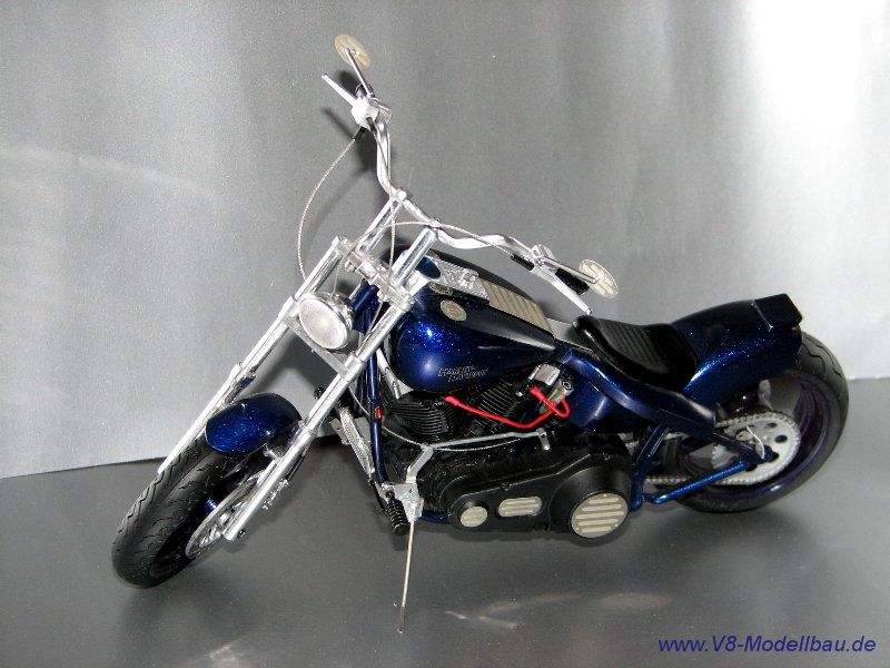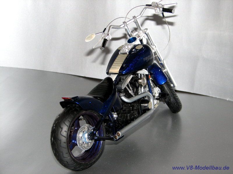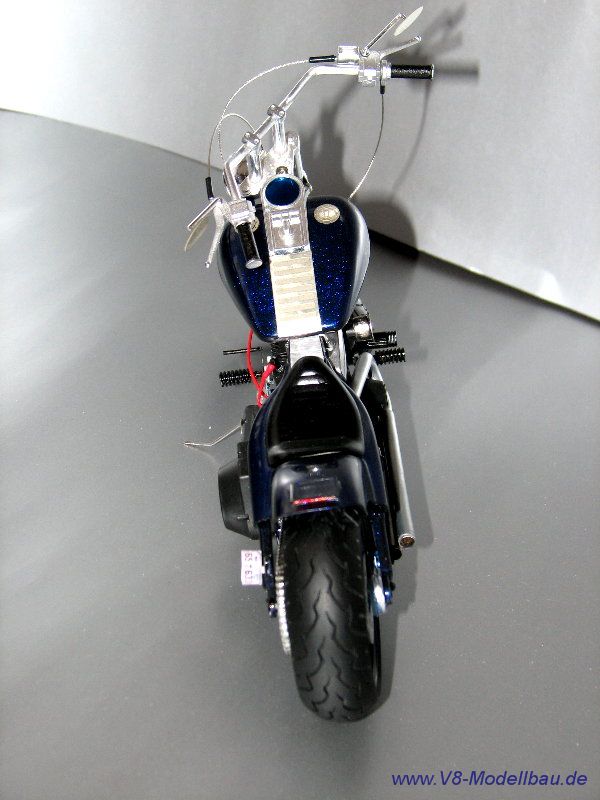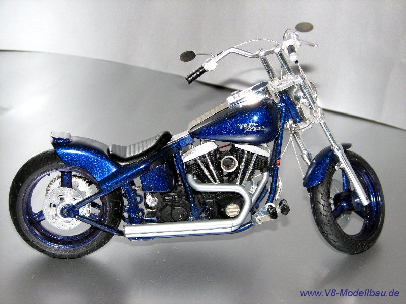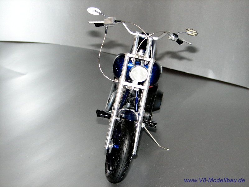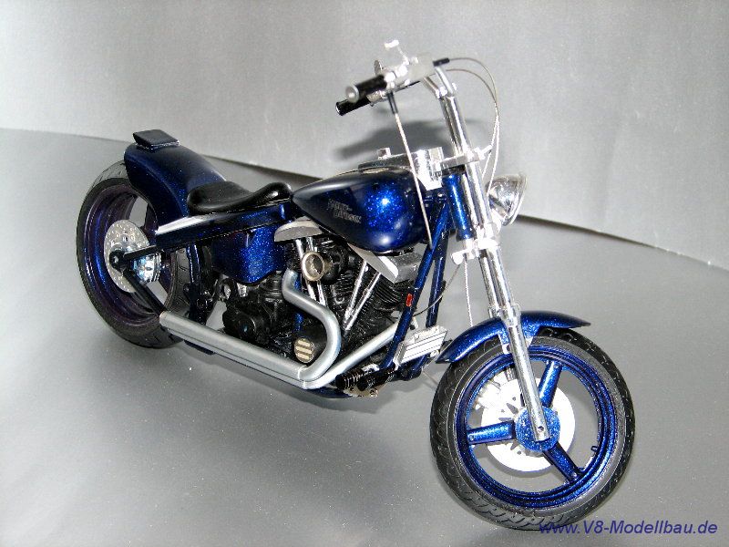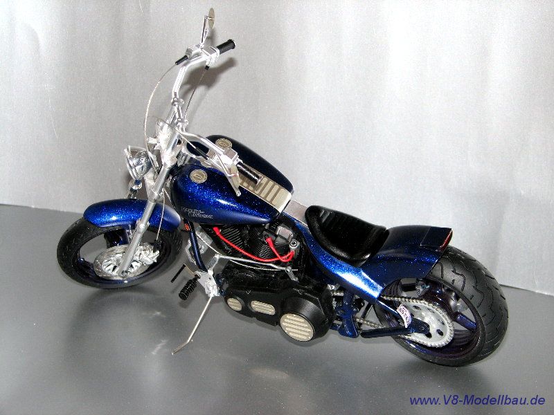 Beide Harleys sind Revell 1:12 Bausätze. Die Umbauten aufzuzählen würde den Rahmen sprengen. Die Bilder sagen genug!