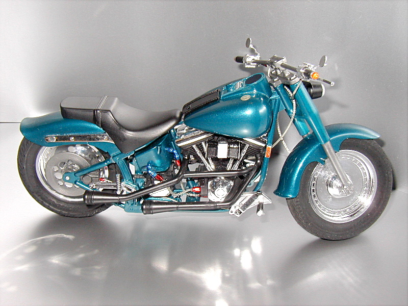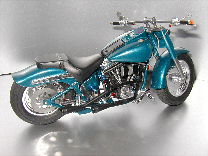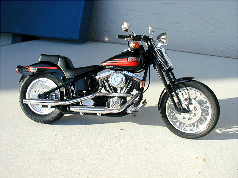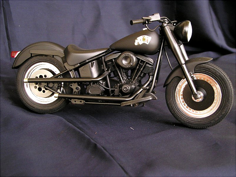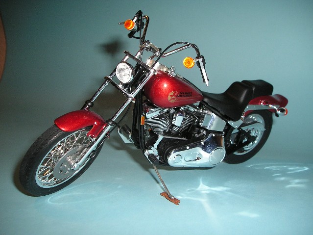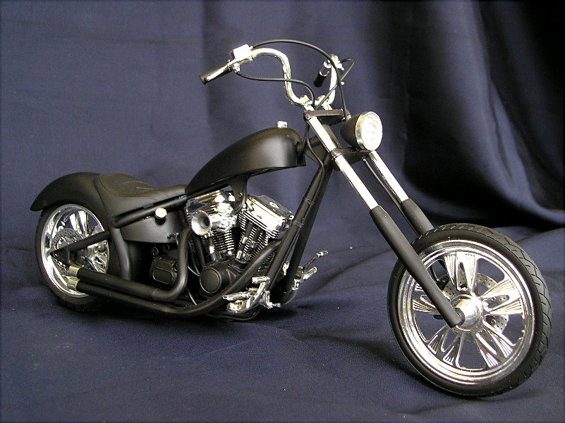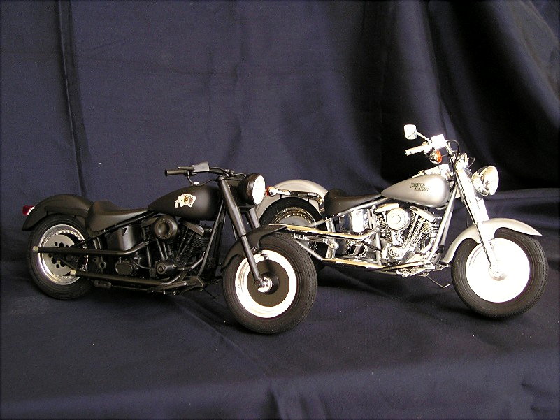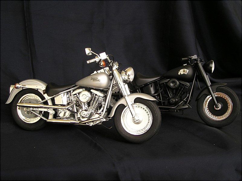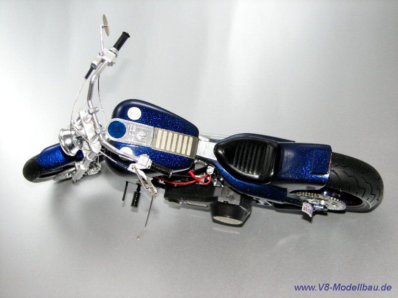 Beide Harleys sind Revell 1:12 Bausätze. Die Umbauten aufzuzählen würde den Rahmen sprengen. Die Bilder sagen genug!