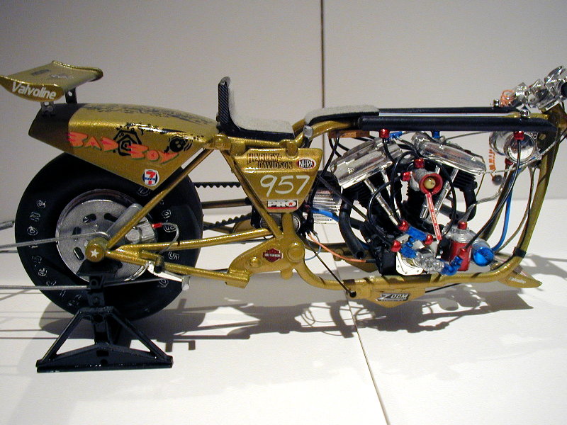 Both Harleys are Revell 1:12 Models. The scratchbuilts are too much to list. The pictures says more than 1000 words.